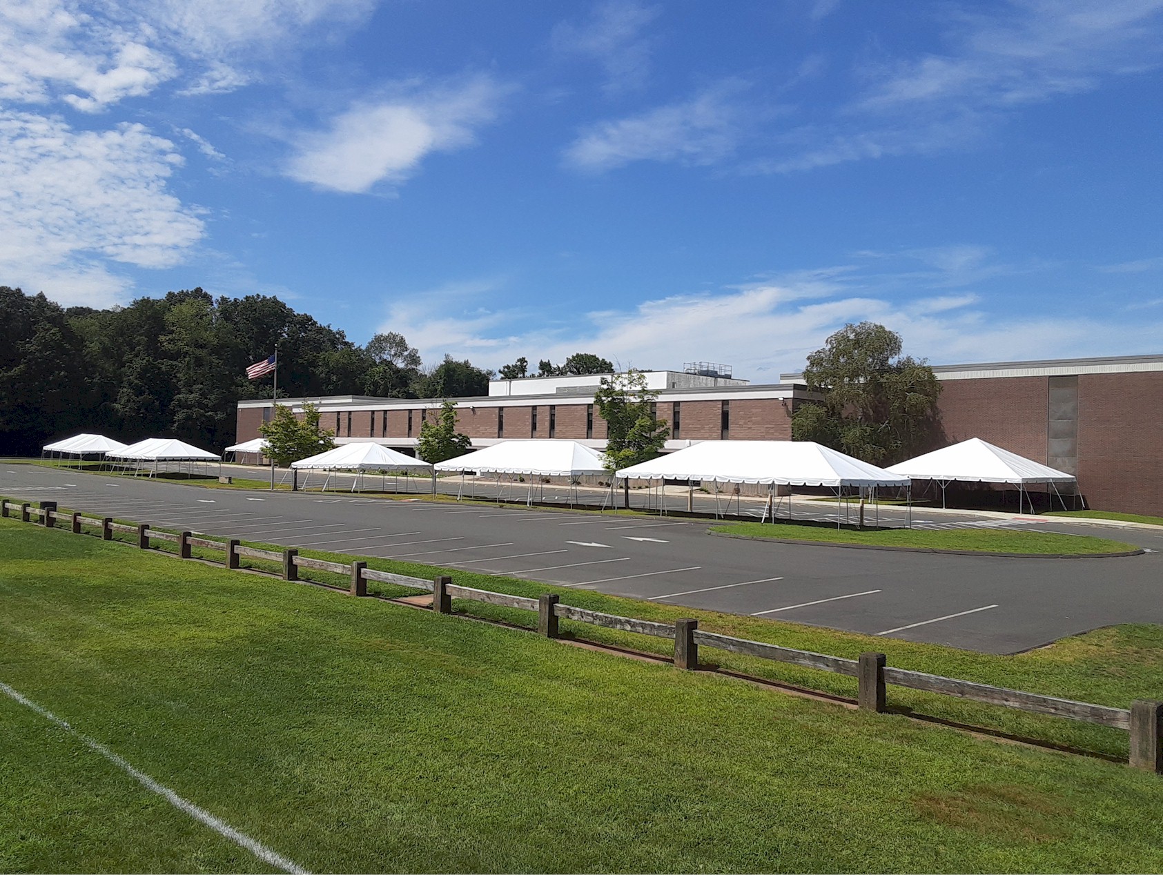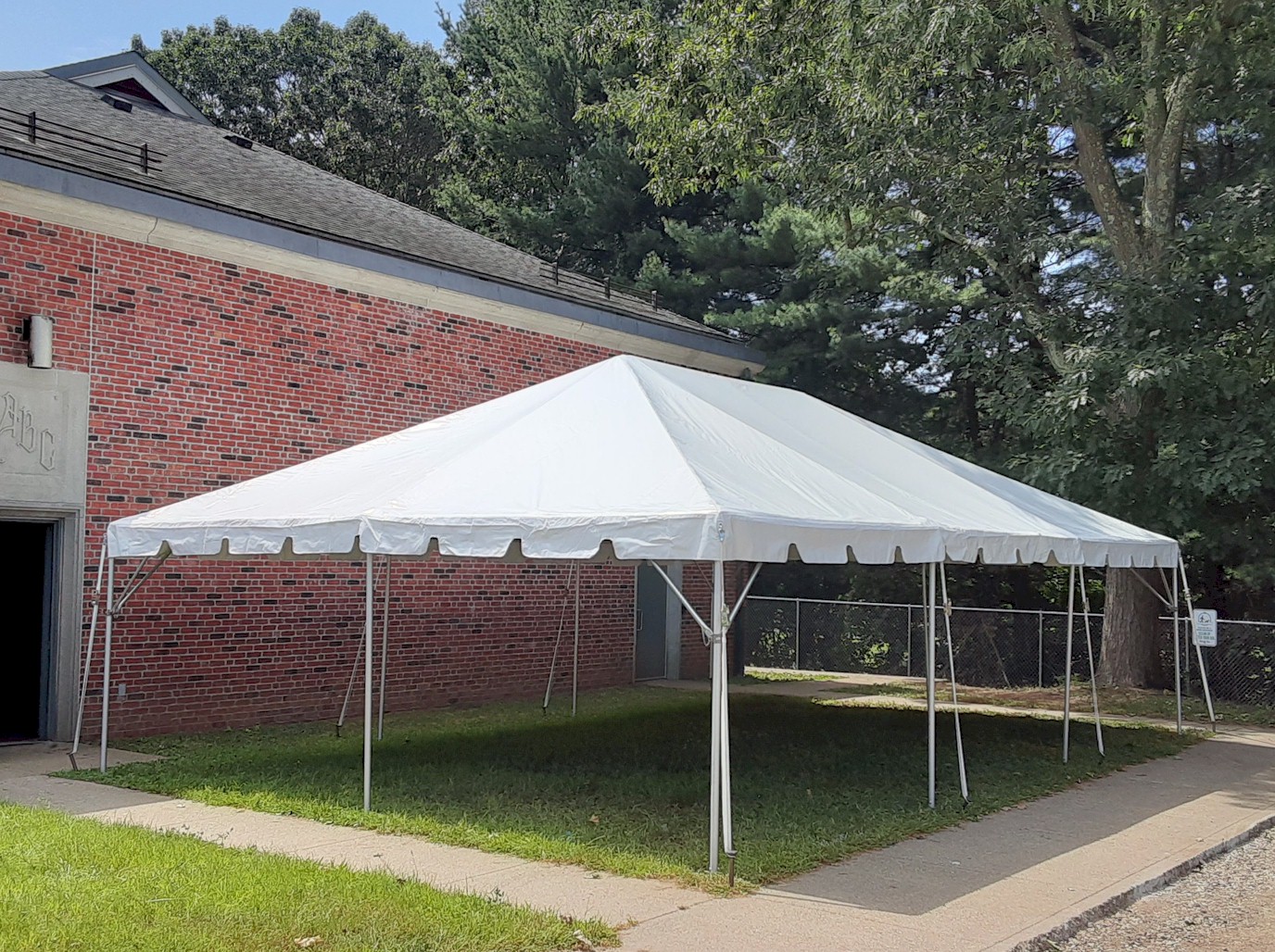 30’x30′ Frame Tent Behind Fence