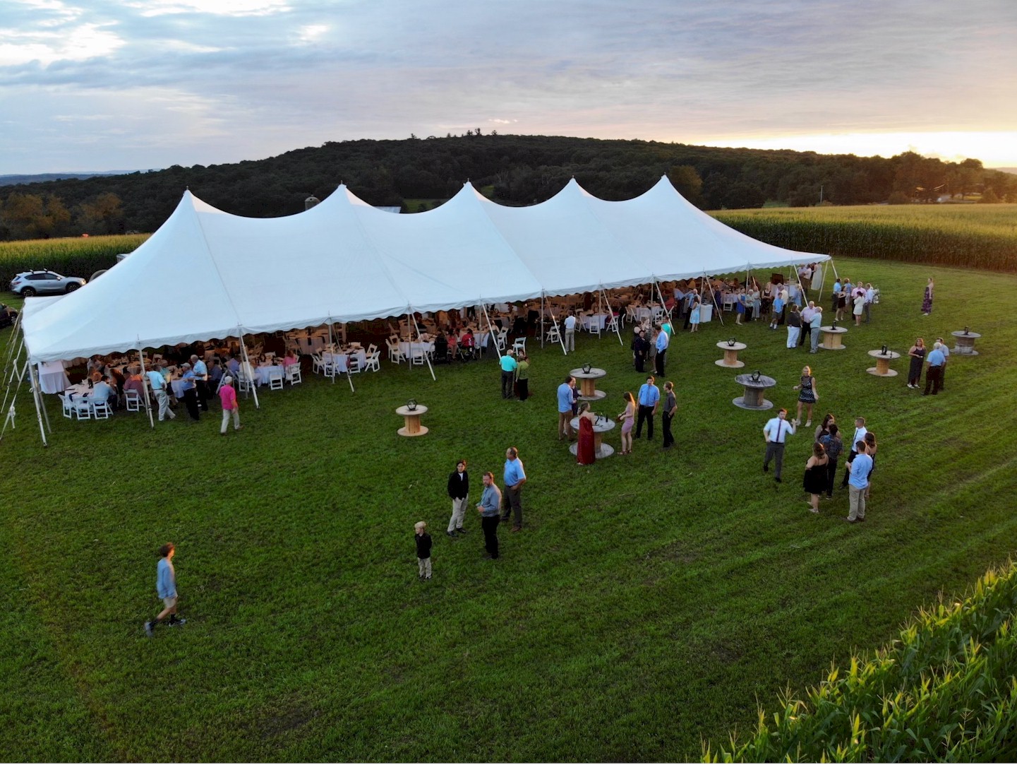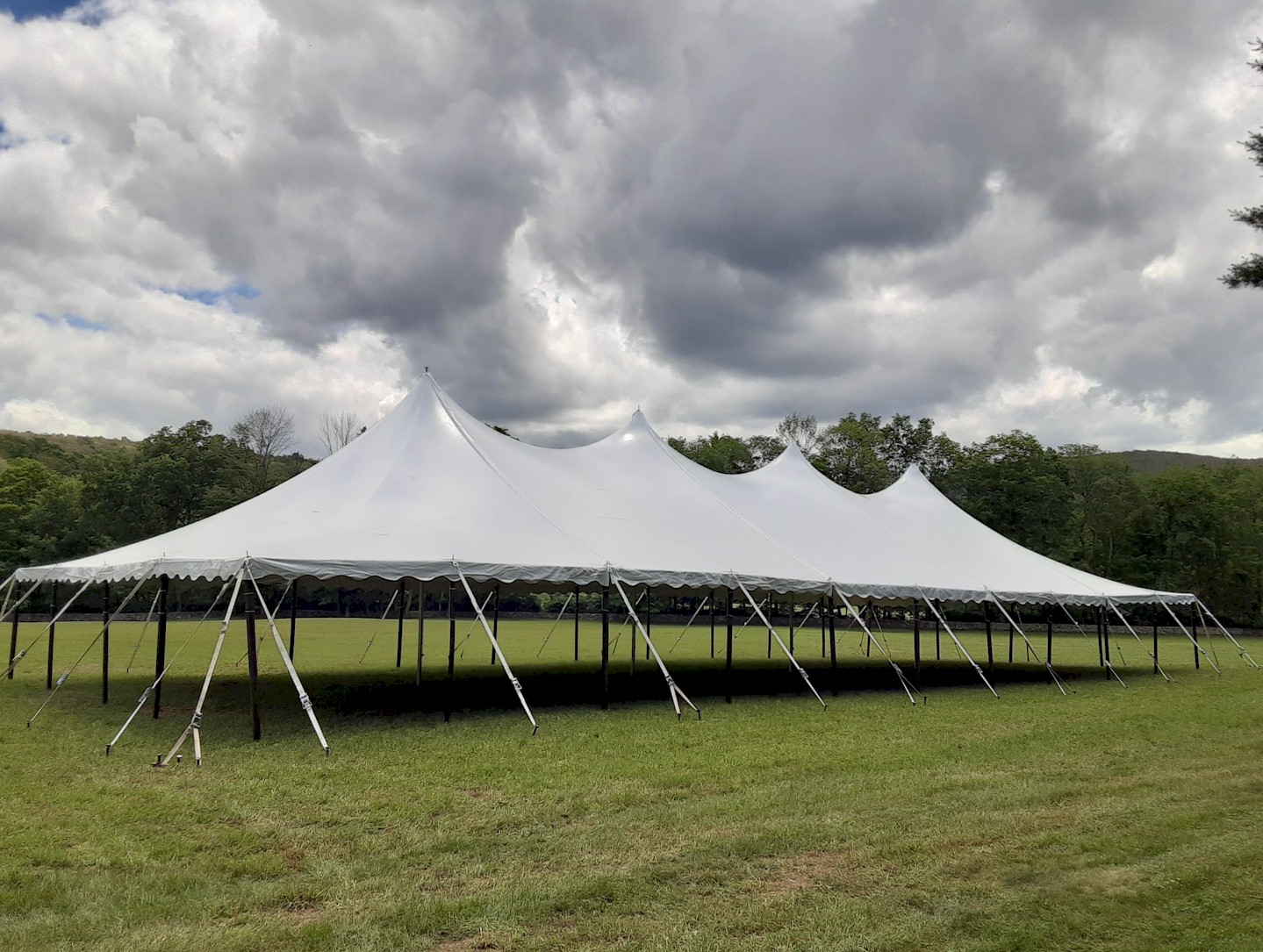30×90 Pole Tent with stone wall Behind it