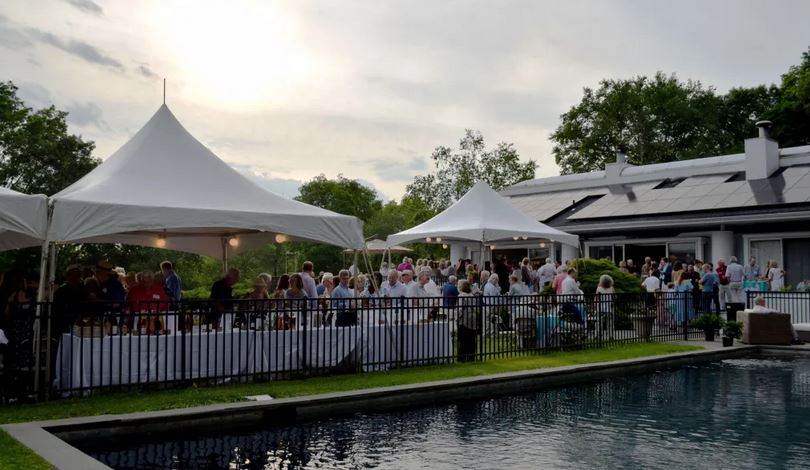 20’x20′ Frame Tent Over Patio by Pool
