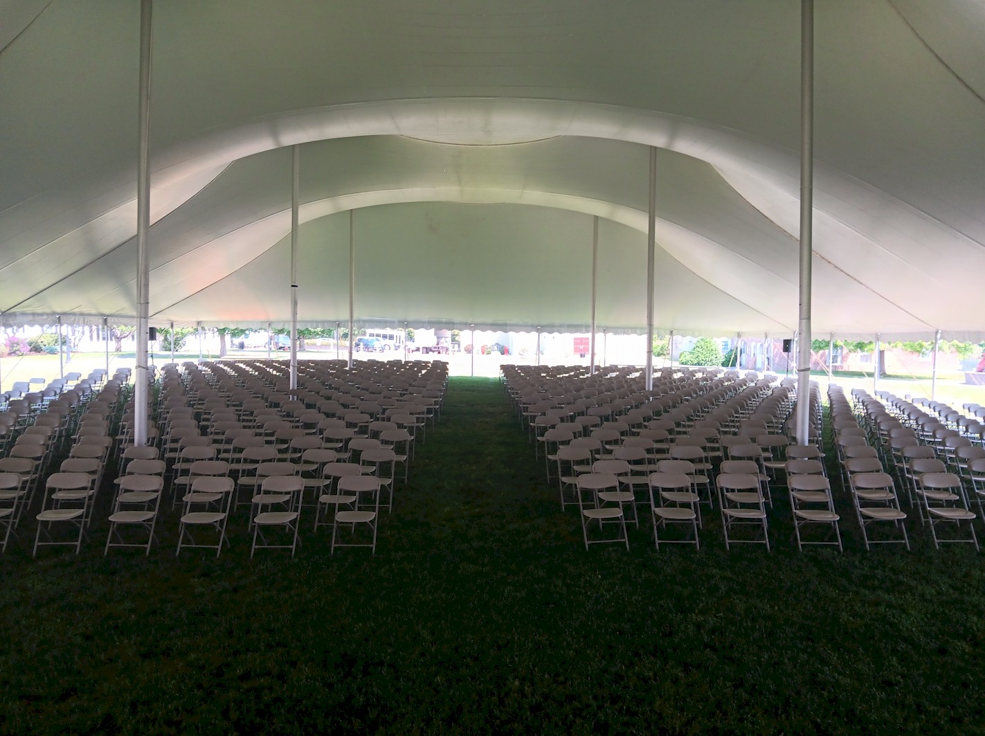 30’x45′ Pole Tent with white party chairs