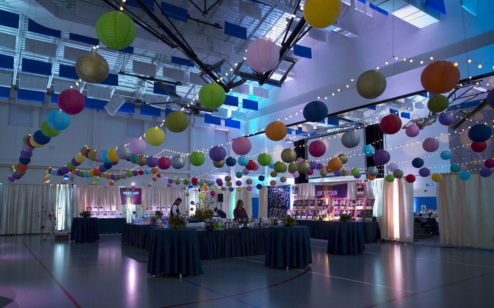 Hanging Japanese Lantern Lights in a century style pole tent