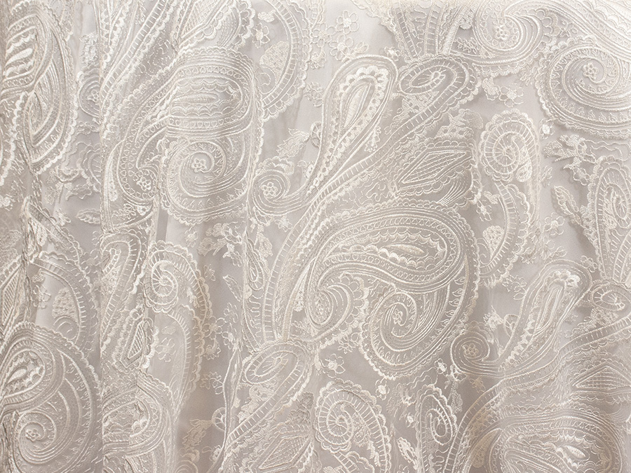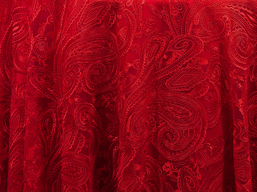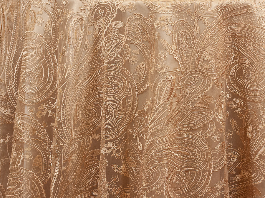 This timeless classic provides old world elegance or mix it up for a modern twist. This sheer lace overlay works beautifully on top of a variety of linens from standard polyester to matte satin.