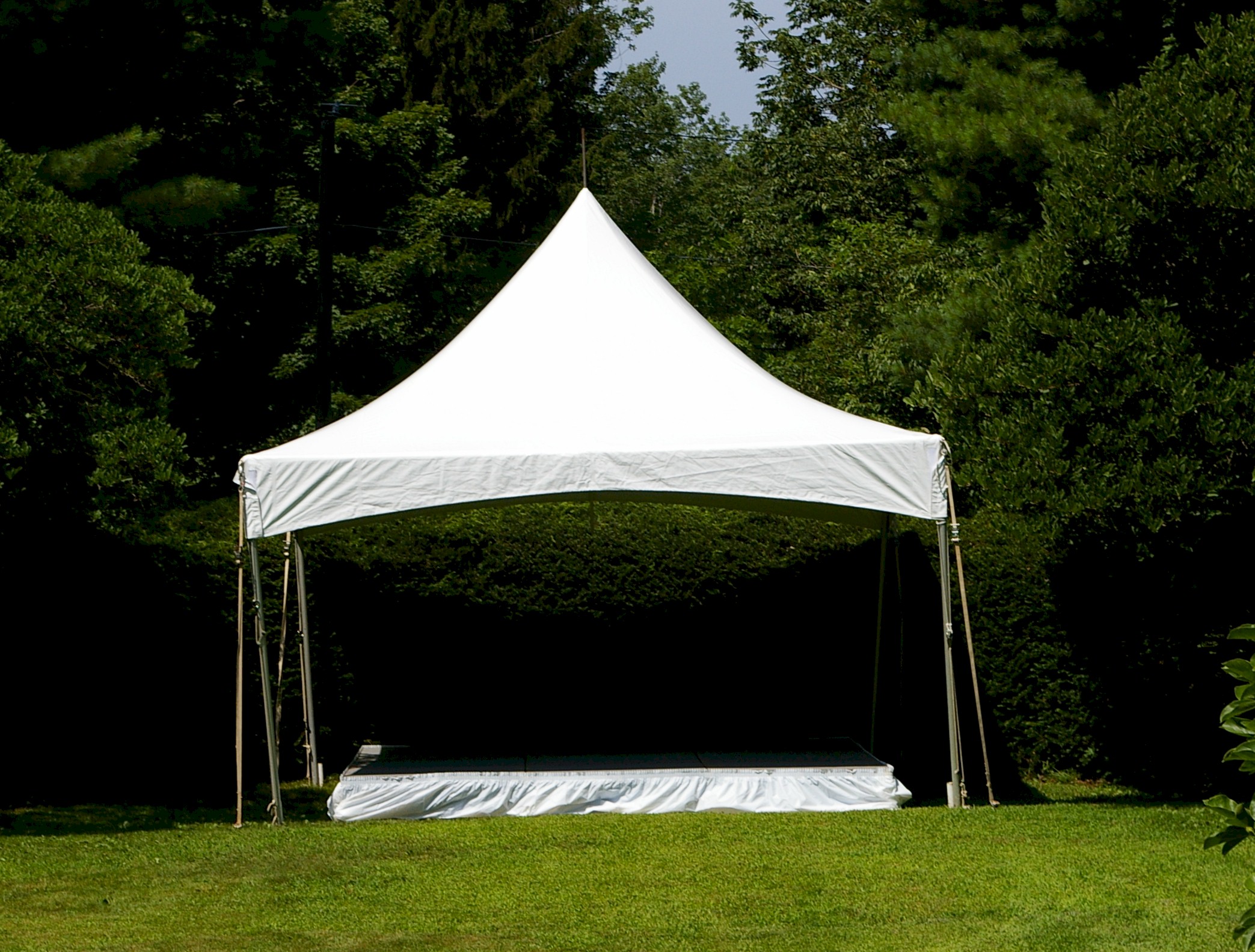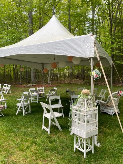 16′ x 16′ Frame Tent - $375 A 16’x16’ tent will accommodate up to 25 seated guests or 35 for a ceremony or standing room event. It also makes a great covering for a bar set up, or catering tent.