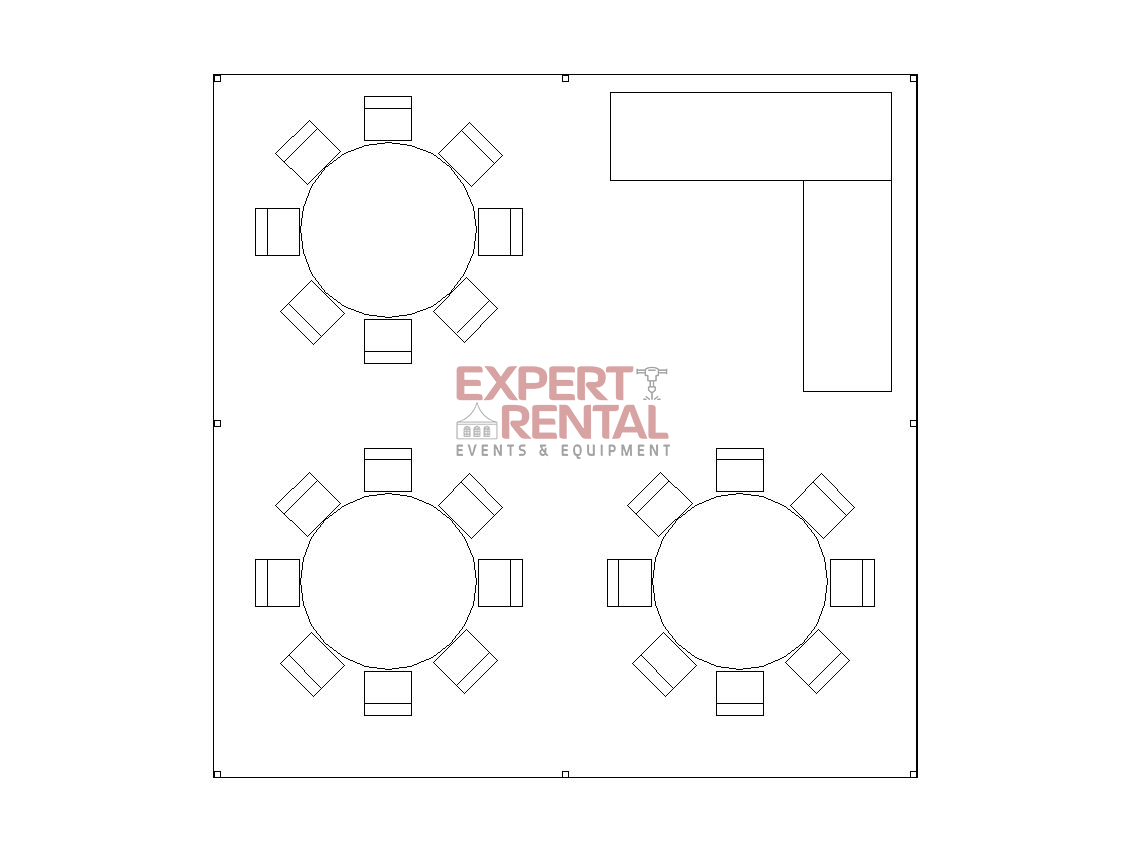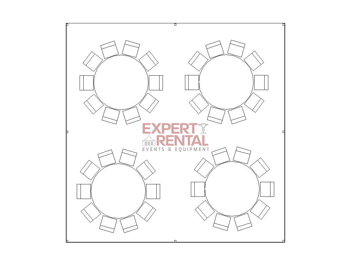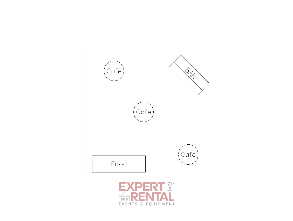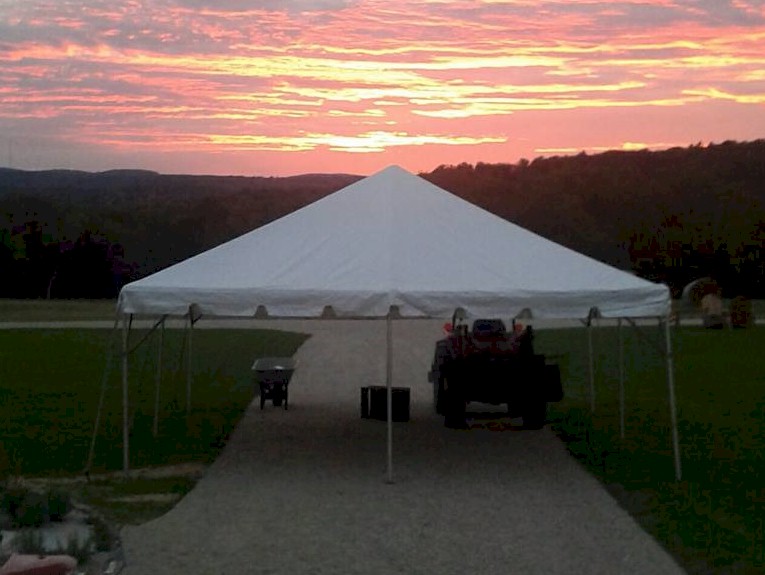 A 20’×20′ tent will accommodate up to 40 seated guests at long or round tables or 60 for a ceremony or standing room event. We can set this up alongside your larger event tent for food service, buffet or bar……even a small dance area!