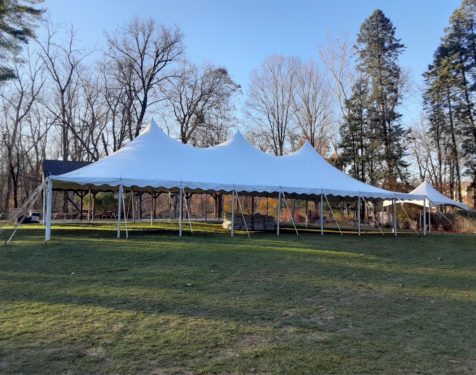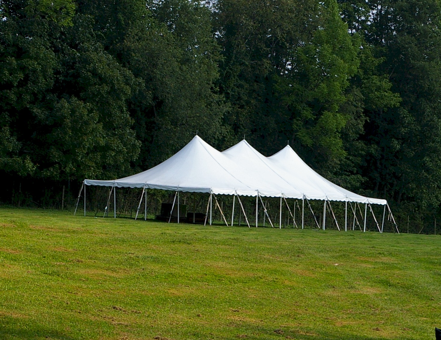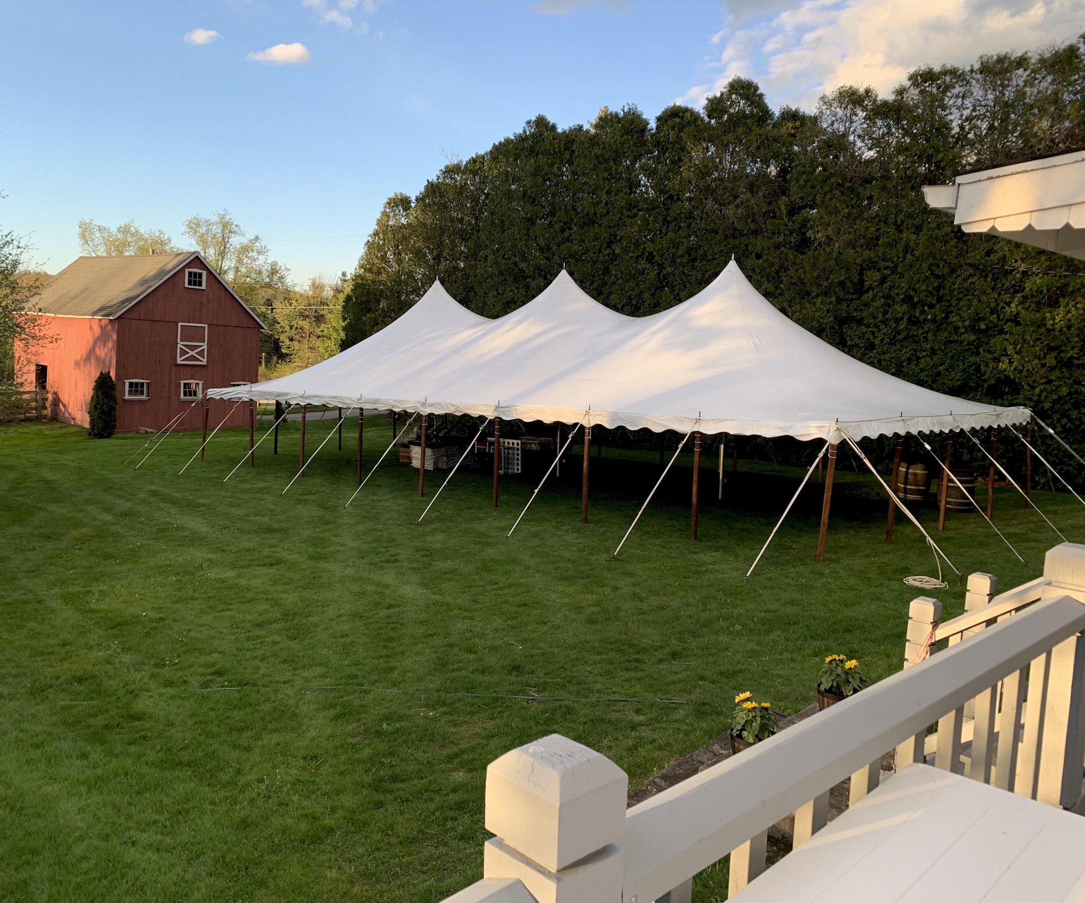 A 30×60 can seat up to 180 guests for dining. This tent has 3 center poles, and is a very popular size for mid-size wedding and event celebrations. Don’t forget in your planning to subtract area needed for dancing, buffet tables & bars when calculating the total guests you wish to seat.
