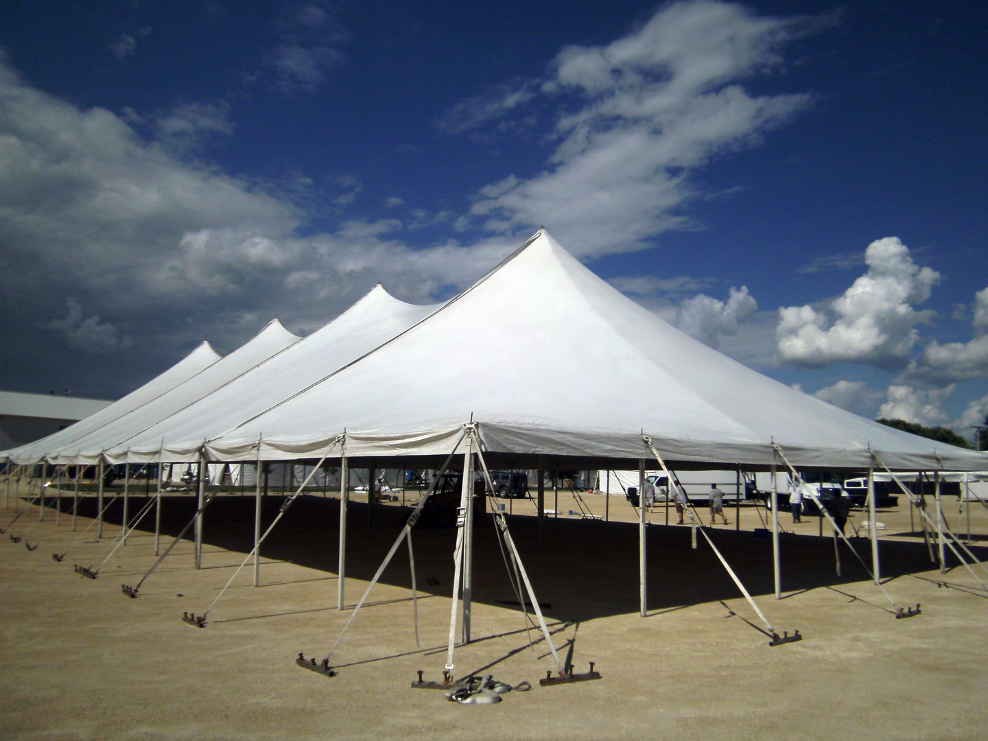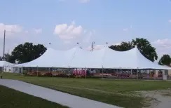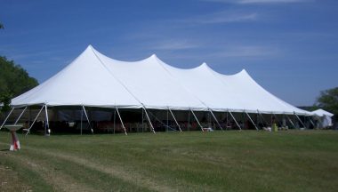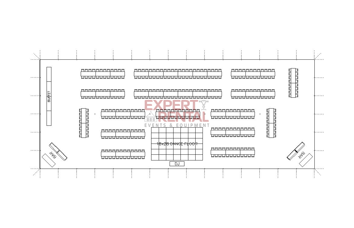 A 60’×150′ tent will accommodate up to 900 seated guests at long or round tables or 1300 for a ceremony or standing room event. This size tent works perfectly for graduation ceremonies and other outdoor gatherings. It can also function well for a sit down party/fundraiser for 600+ guests with ample room for dancing/auctions etc.