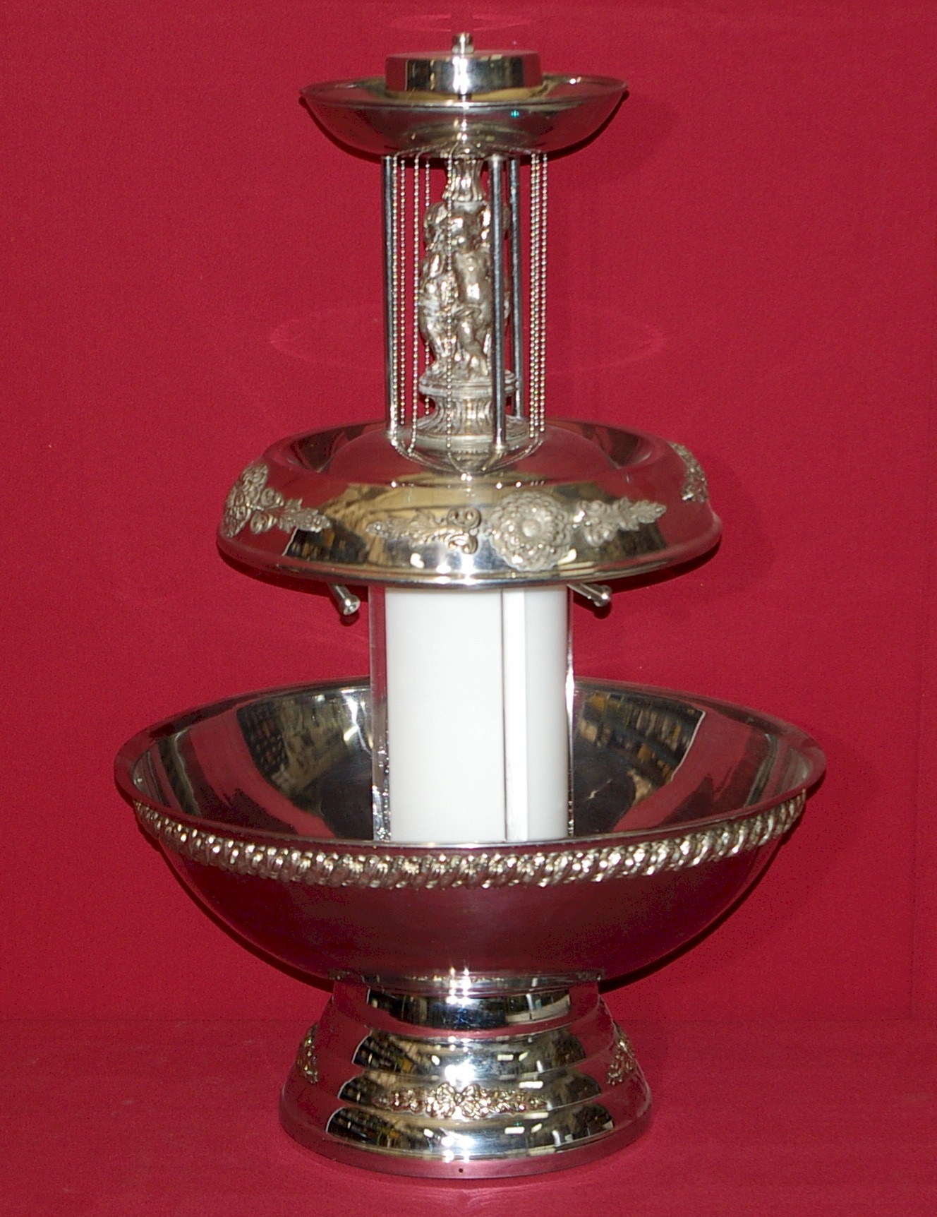 Just one word of caution when planning your menu. We caution against using anything too sugary in your punch as the heat from the fountain works may crystalize highly sugary beverages in the feed tube (we’re talking SUGARY, like Hi-C Ecto cooler beverage, not giner ale or similar fluids). Beware of highly pulpy punches also as they will not work in these beverage fountains. They tend to clog the works.