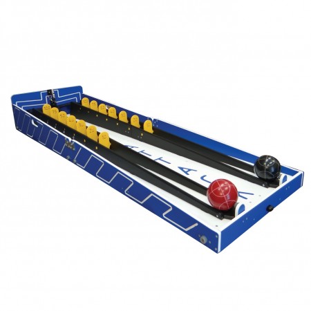 This is a fun game where you can compete with a friend or yourself by rolling a ball up an incline to knock down point numbered flaps to achieve the highest score. You must balance power and precision to land in high-scoring zones, avoid flapping out by overpowering your roll and falling of the top edge with a zero score.