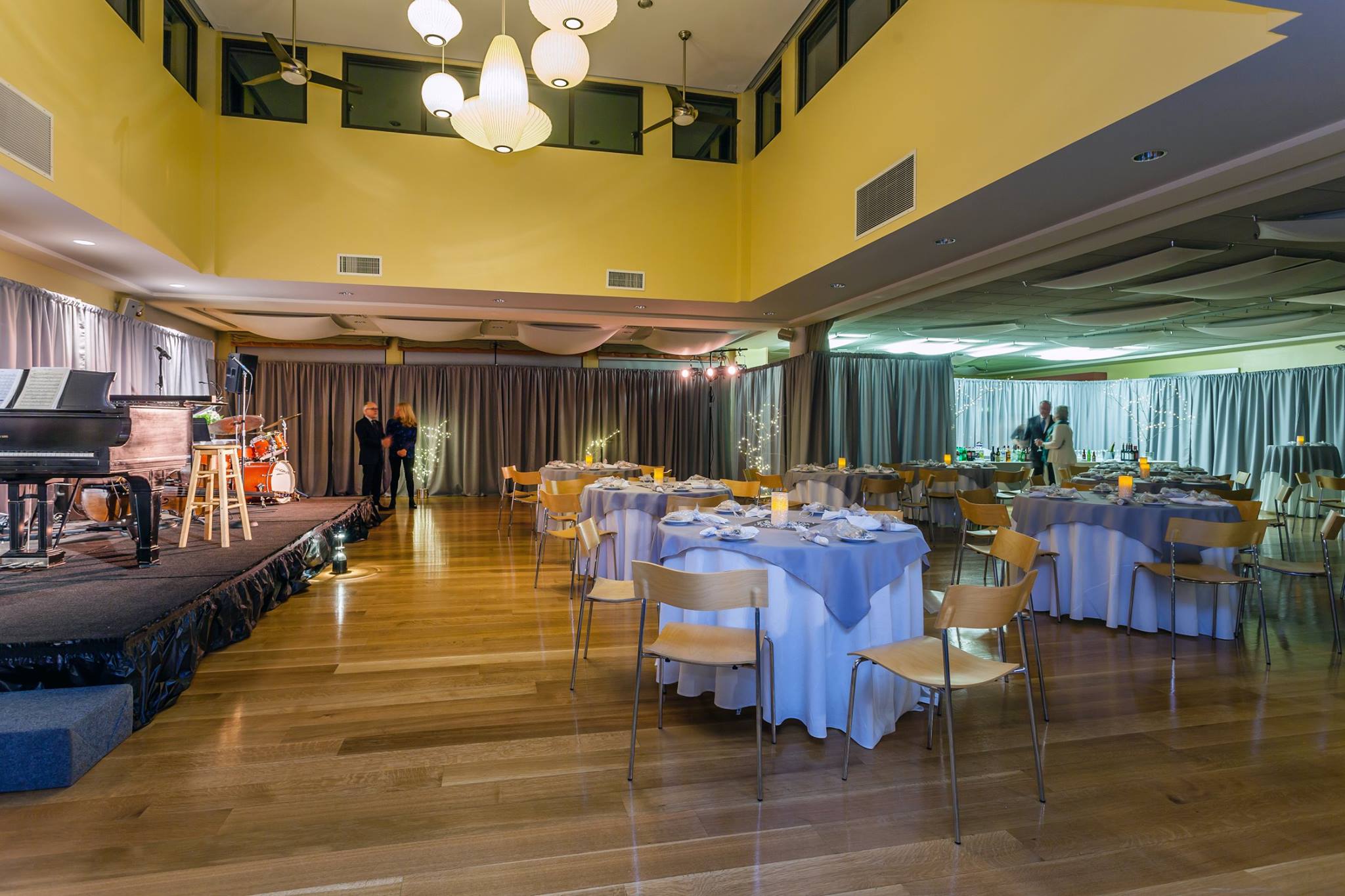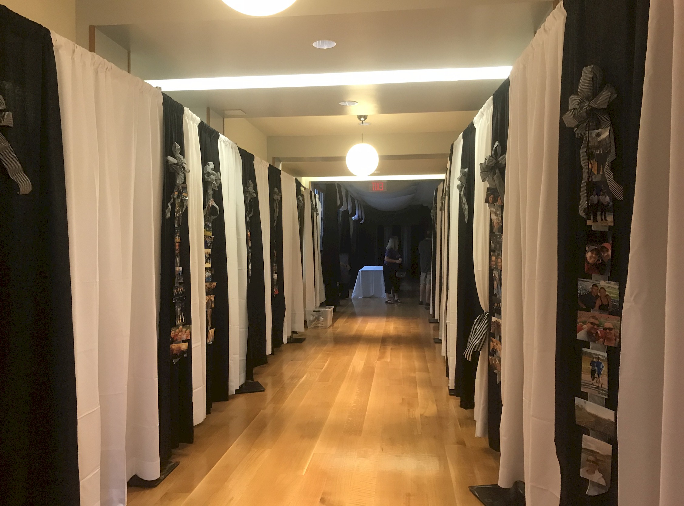 We stock traditional Black and Champagne banjo fabric drape in-house and have access to hundreds of other fabrics and colors to completely customize your event. See how some people have taken everyday spaces and made them their own.