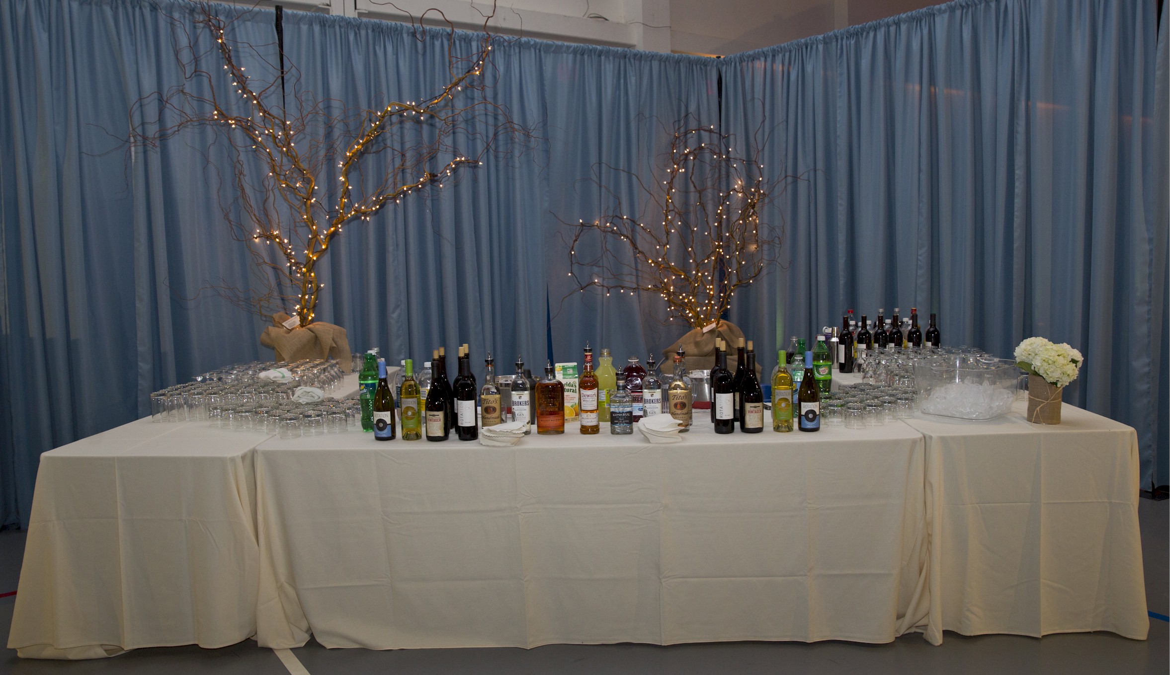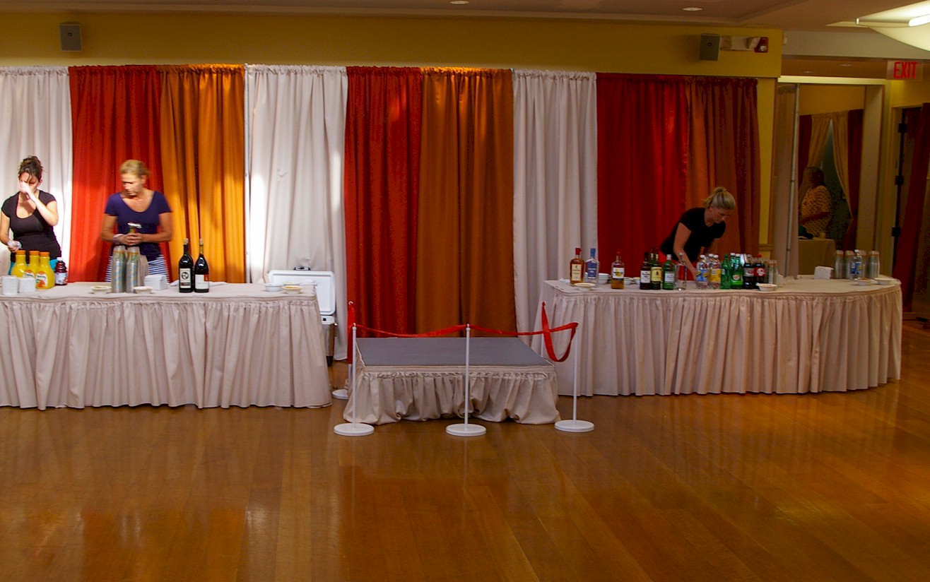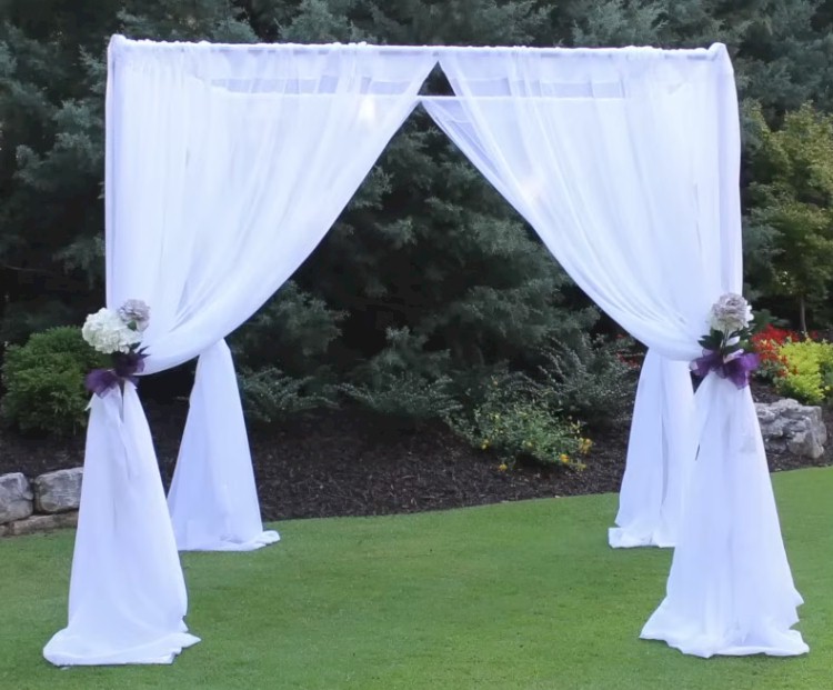 Want a calm “cabana feel” for an area for people to just chill and relax amid the bustle of the rest of your event, or want a fun booth look for a bar. Make a square, pull the draps off to the sides and there you go.