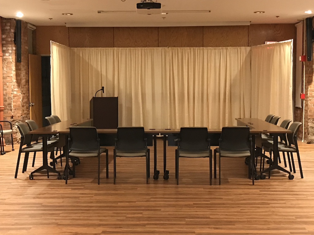 You don’t need a whole room style changed? You just need to divide off a big room for changing or prep areas, or make booths for vendor events. That’s where post and drape like this got started.