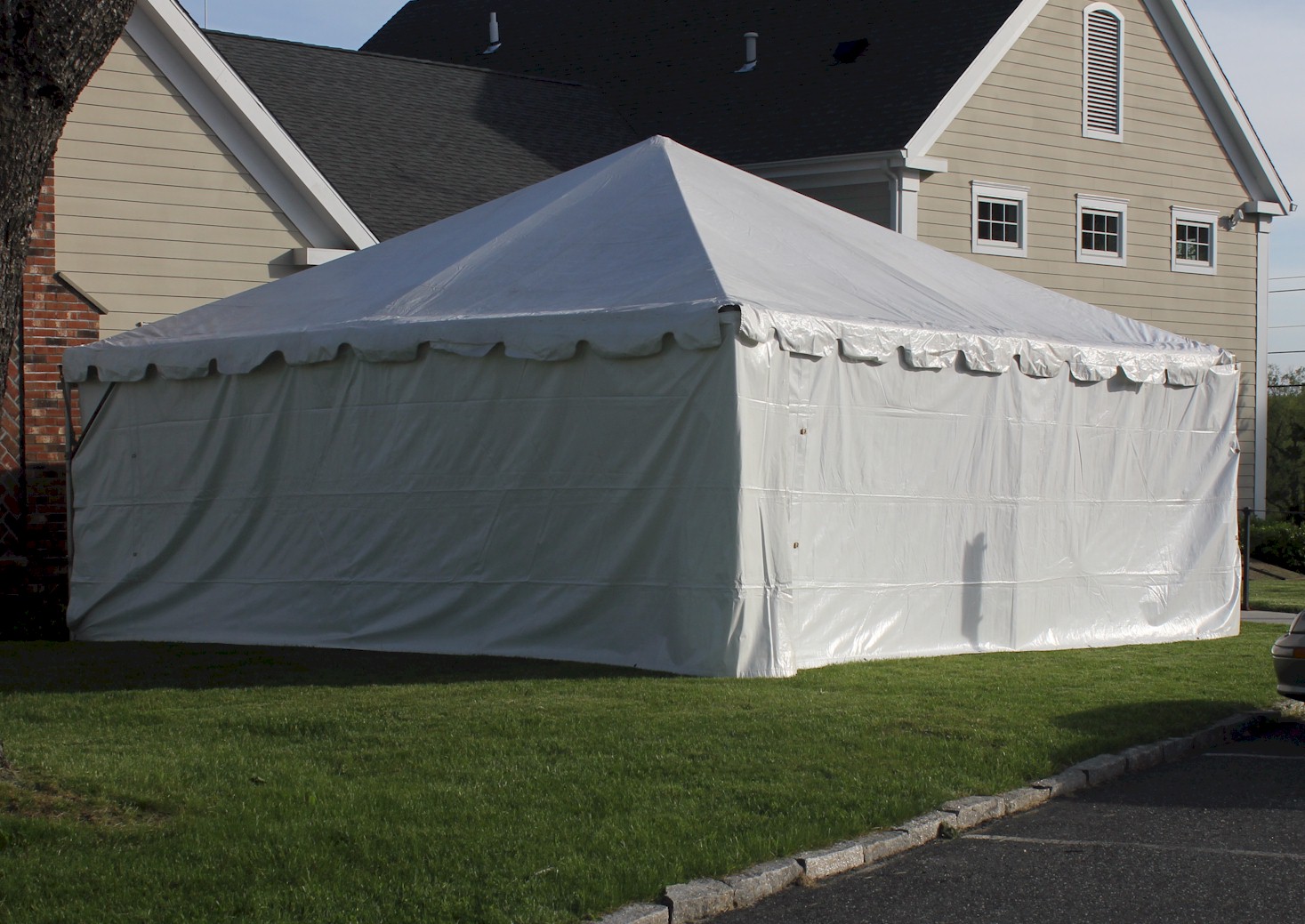Solid walls help close in a tent and give a full sight block either in or out. They are often used to close in catering or changing tents. They also block off the “nosey neighbor’s” houses, or hide views of that corner of your yard that you just didn’t get to clean up before the event.