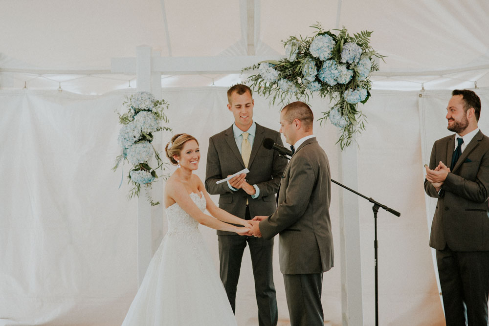 Tent walls do not come installed and are delivered to you rolled in bags and left under the tent with the other rented items. All of our tents have a rope that runs around the perimeter edge (as pictured below) that the walls clip to. So it’s easy to just roll them out and clip them up where ever and whenever it is needed around the tent.