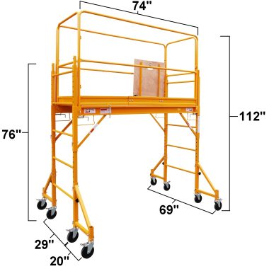 Our narrow “Baker’s Rack” scaffolding is a compact, mobile, modular scaffolding system for indoor/tight spaces, featuring narrow frames, walkboards, casters for mobility, and safety features like guardrails/safety cage, providing a stable alternative to ladders in tight areas like hallways or rooms. Designed to fit through standard doorways and work in confined spaces. Equipped with either locking caster wheels for easy repositioning or flat feet for added stability.